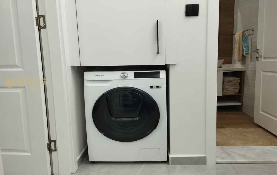 Dairede iki yatak odası ve tam donanımlı mutfağa sahip geniş bir oturma odası bulunmaktadır. Tüm beyaz eşyalar Samsung markasına ait olup, iç mekan modern ev ve bahçe mobilyalarıyla tamamlanmıştır. VRF klima sistemi sayesinde yılın her döneminde konforlu bir sıcaklık sağlanır.