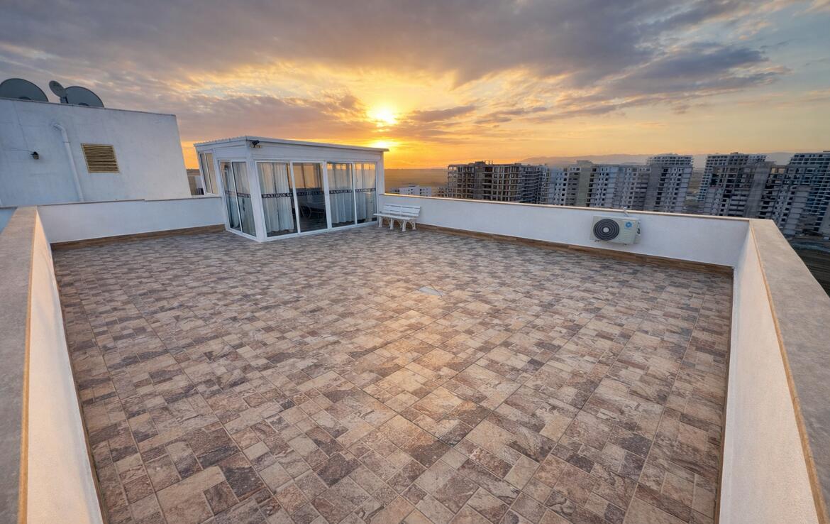 150 m²’lik özel çatı terası , oturma alanı, çardak ve barbekü
